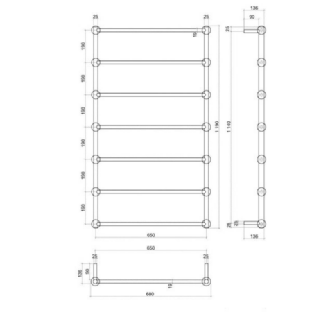 $688.00- 12Volt straight round heated towel ladder in polished stainless steel finish