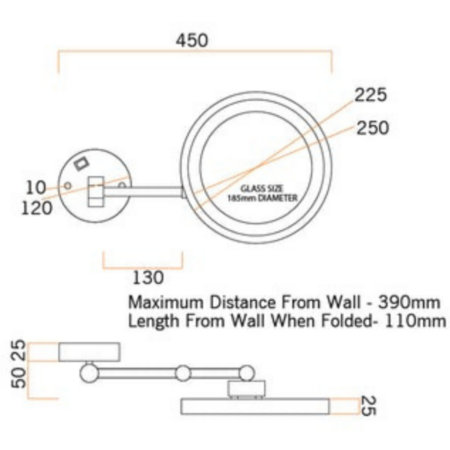 - Maximum distance from wall is 440mm, length from wall when folded is 110mm
