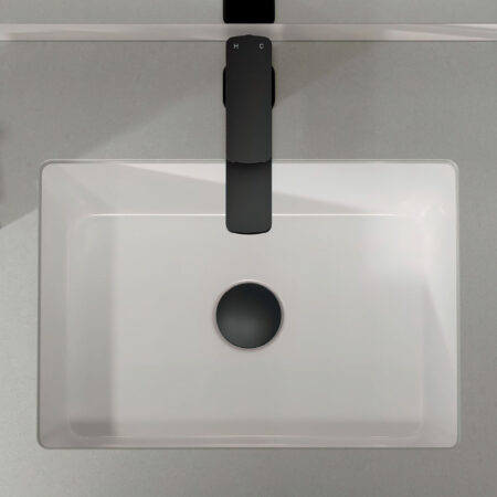 - Includes Gloss warm white 20mm Vanessa Poly-Marble top with integrated basin