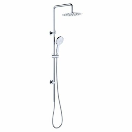 - Timeless cross handle design facilitating adjustable shower height along the rail