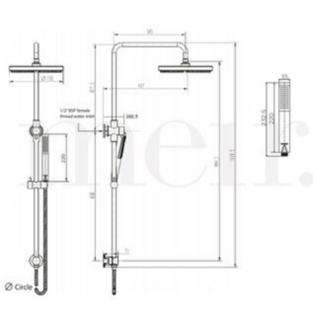 - This Shower Rail has an innovative world-first design, exclusive to Meir; comprising of a universal water inlet; enabling this shower to be installed either as a top or bottom water connection, suiting both existing and new homes