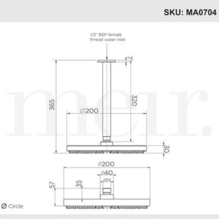 - Black shower head size: 200mm