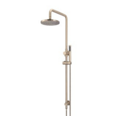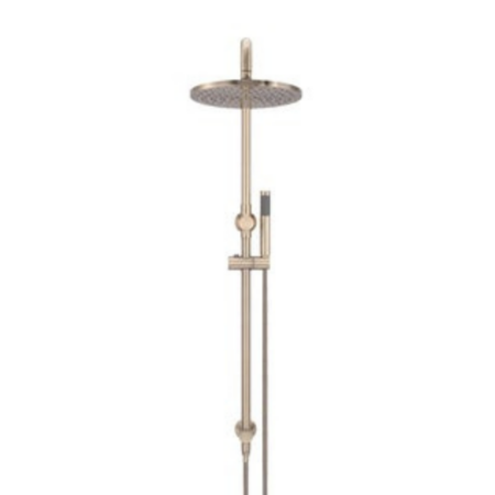 $350.00- The Round Champagne Ceiling Arm is made from solid brass and drops 300mm, connecting to a beautiful round rainfall shower head finished in an electroplated coating