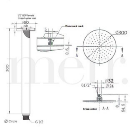 - Champagne shower head size: 300mm