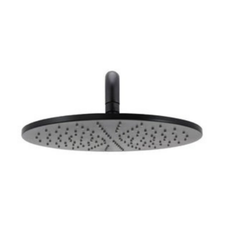 - The Round matte black ceiling arm is made from solid brass and drops 300mm, connecting to a beautiful round rainfall shower head finished in an electroplated coating