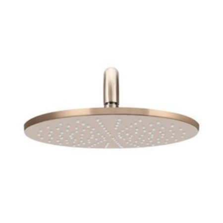 - The Round champagne ceiling arm is made from solid brass and drops 300mm, connecting to a beautiful round rainfall shower head finished in an electroplated coating