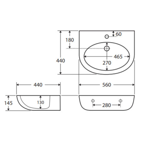 • Basin Size: L 595mm x W 395mm x H 115mm