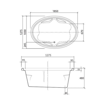 $2134.00 – $2209.00- Delicate oval bath spage with flared ends