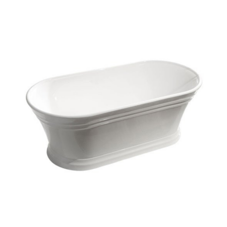 - Featuring elegant curved, panel style details and a flared skirt around the base of the bath