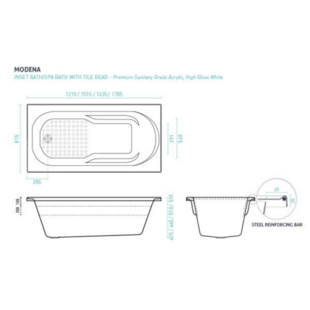 $2282.00 – $2584.00- Gorgeous spa bath design available in 1520mm, 1650mm and 1790mm lengths