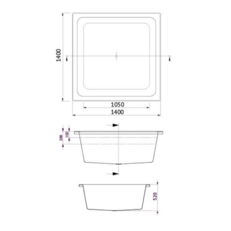 - 1400mm x 1400mm x 500mm