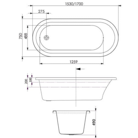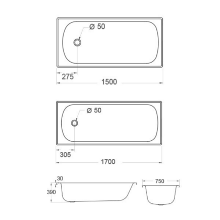 - Waste positioned in the centre of the tub, suitable for dual bathing