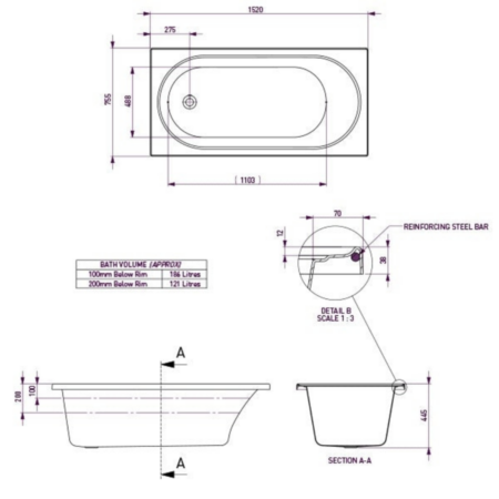 $499.00 – $759.00- Please note: Free SYD delivery on this bath is only applied to the 1675mm & 1790mm size bath