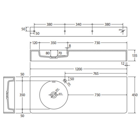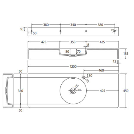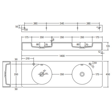 - Outer Dimensions: 1400 x 450 x 135 mm