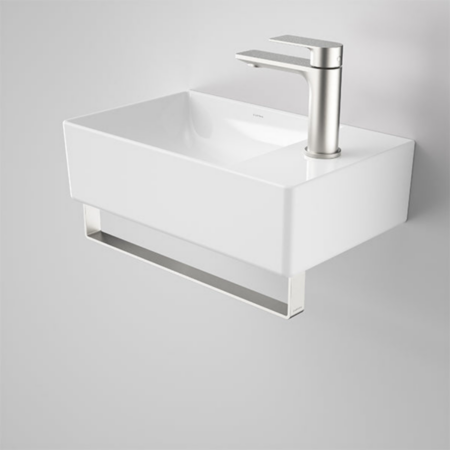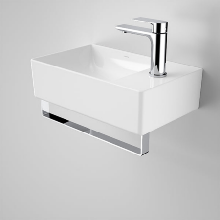 - Hand towel rail not included – upgrade your basin to have the Urbane II Hand Wall Basin Integrated Rail available in a range of finishes to match your tapware