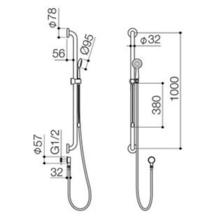 • Stylish chrome shower mounted on 1000mm stainless steel grab rail for additional support