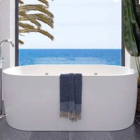 $3534.00 – $3609.00- Island design is inset in a tiled ‘island’ hob and can be placed anywhere in the bathroom. Creating a statement and showcasing tile choice