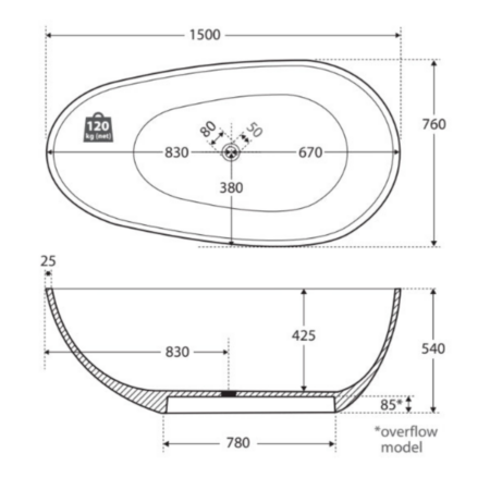 - DELIVERY NOTE: Stone baths weigh in excess of 150KG and may only be delivered to an area in front of your home where a tail lift truck/pallet jack can easily access.