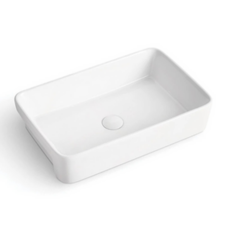 - Reversible solid surface basin with overflow, available in gloss white or matte white