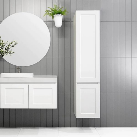 - Semi-recessed design sees the basin overhang the vanity for easier access