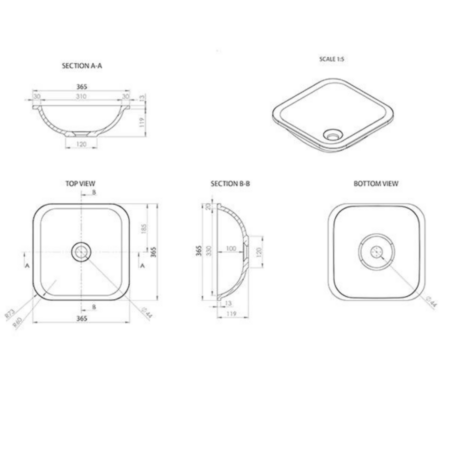 - Top dimensions: 500(W) x 250(D) x 100(H) mm. 4L basin capacity to overflow.